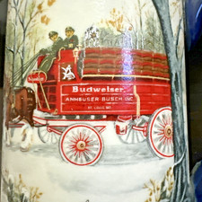 Vintage Anheuser-Busch Budweiser Clydesdale Carriage Holiday Beer Stein Mug