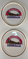 Set of 2 Ceramic Budweiser Clydesdales 4.5" Gold Rimmed Round Coasters