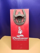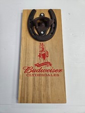 Budweiser Wall Mounted Horse Shoe Bottle Opener Clydesdales Wood Backing