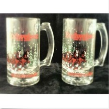 2 Budweiser Champion Clydesdales 12 oz Glass Beer Mugs