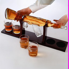 Unique Whiskey Decanter Set Pistol Ak 47 Glass Crystal Bottle Display Dispenser