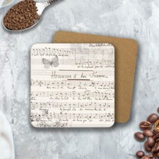 Antique music papers MDF wood MUG COASTER gift idea 10cmx10cm