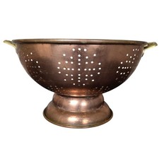 Vintage 11in Copper Colander Silver Tone Interior Brass Handles Korea