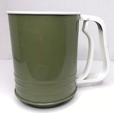 Vintage Flour Sifter, Handheld, Aluminum, Green/White
