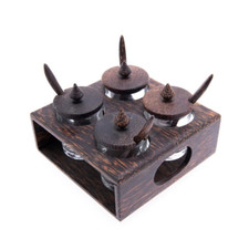 Thai Spice Handmade Wood Condiment Caddy Set 4 Glass Jars with Carry Handle Rust