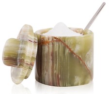 Marble Salt Cellar with Lid and Spoon 4 Inch Green Small Seasoning Containers...