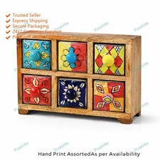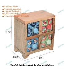 Beautiful Handcrafted Wooden Table Decor Jewellery Box With Ceramic 6 Drawers