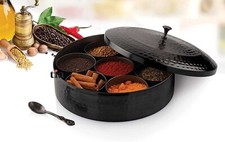 Antic Hammered Spice Box/ Masala Dabba with Lid/7 Spice Containers and 1 Spoon