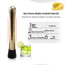 Mirror Finished Stainless Steel Muddler with Ergonomic Handle and Silicone Tip