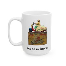 Vintage Rabbit & Juno Motor Scooters Tin Toys Japan Retro Ceramic Mug, (15oz)