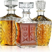 Whiskey Decanter Set of 3, Premium Crystal Spirits Decanter for Scotch, Bourbon,