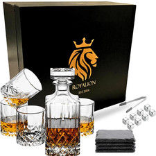 ROYALION Whiskey Decanter w/4Glasses,8 Stainless steel ice cubes,1 tong, giftbox