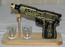 Glass Hand Painted Pistol Whiskey Gun Decanter & Pistol Bullet Shot Glasses Set