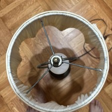 Antique Vintage Lamp Shade Cover | Wooden & Turquoise Bead Fringe | Cream
