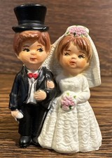 Vintage Bride & Groom 2.25” Wedding Cake Topper Dress Veil Tuxedo Top Hat Figure