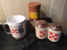 Purine Salt & Pepper Shakers , Coffee Cup / Mug Tin Can Puppy Advertising