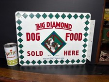 VINTAGE "BIG DIAMOND DOG FOOD" METAL FLANGE ADVERTISING SIGN (16x12") NICE COND