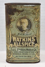 Vintage Watkins Allspice Large Half Pound Advertising Spice Tin Can