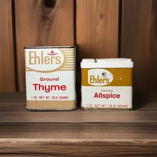 VTG 2 Ehlers 1oz Spice Tin Metal Can MCM Retro Kitchen Advertising W/ Contents