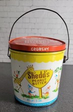 Vtg. Shedds Crunchy Peanut Butter Tin Can Pail w/Lid & Handle Food Advertising