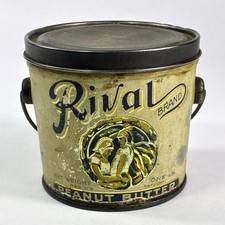 Vintage Rival Brand Peanut Butter Advertising Tin Pail Can Cambridge MA Soldiers