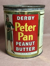 Vintage DERBY PETER PAN Brand PEANUT BUTTER Advertising Can 12 oz 1950s/0325-10