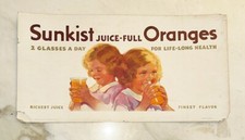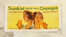 Vintage 1932 Sunkist Orange Advertising Sign Poster 2 Glasses A Day Juice Girl