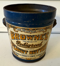 1920's Vintage Browne's Pedigreed Peanut Butter 1 Lb Advertising Tin Can Blue