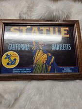 Vintage California Bartletts Fruit Advertising Poster in Wooden Frame