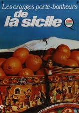 FROM SICILY ORANGES PORTE BONHEUR Vintage 1966 Swiss advertising poster 36x51 NM