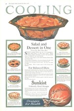 1918 Sunkist Oranges Antique Print Ad World War I Era Salads Balanced Diets