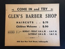 1920's Glens Haircut Paper Advertising Sign - Indianapolis, Indiana