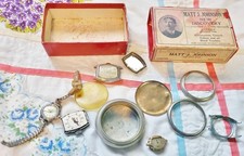 Antique Matt J Johnson New Remedy Medicine Box w Watch Parts inside Chetek WI