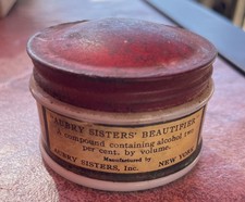 ANTIQUE AUBRY SISTERS BEAUTIFIER SKIN CLEANER TIN LITHO LID GLASS JAR MAKEUP