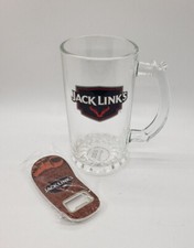 Jack Links Beer Mug & Bottle Opener Set, Clear Glass, Beef Jerky Advertising
