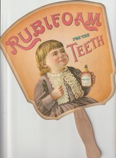 RUBIFOAM FOR YOUR TEETH, CHILD HOLDING BOTTLE WITH ADVERTISING ON BACKSIDE