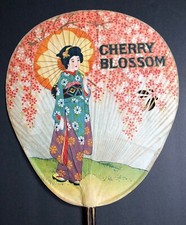 Geisha Girl Advertising Fan Sign Cherry Blossom Japan Tea Early Rare