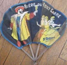 Beer 1930s French Advertising Fan, Biere du Fort Carre, Color Litho Poster Art