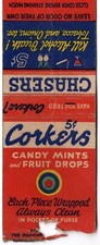 Vintage Matchbook Cover, Corkers Candy Mints And Fruit Drops, 1930's