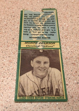 VINTAGE 1935 DIAMOND MATCH MONTE PEARSON CLEVELAND INDIANS OLD MATCHBOOK COVER
