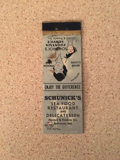 VINTAGE SCHUNICK'S SEAFOOD RESTAURANT BALTIMORE MARYLAND OLD MATCHBOOK COVER