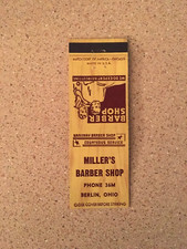 VINTAGE MILLER'S BARBER SHOP BERLIN OHIO OLD MATCHBOOK COVER