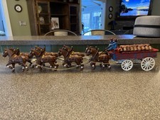 Vintage Cast Iron Horse Drawn Beer Wagon with Driver and 8 Clydesdales Budweiser