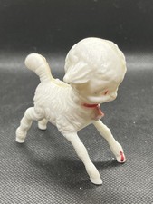 Vintage 1950 Lamb Baby Rattle White Red Bow Hard Plastic Figure Easter Irwin