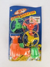 NEW 80s Flying Saucer Gun 3 UFO Discs Space Alien Robot Vintage Ri Toys NOS