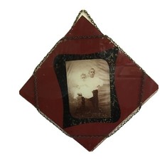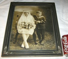ANTIQUE WEDDING LADY DRESS BOY CHILD FUNERAL ART PHOTO PICTURE WOOD GLASS FRAME