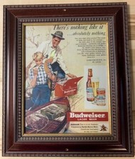 Budweiser Beer Advertisement Antique Picture Framed Glass (136)