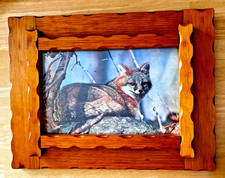 Vintage Wooden Frame w/ Glass Front & Fox Photo | 18.5" x 14" | Wire Hanger