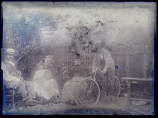 Family Garden Bike Photo Negative c1930 Plate Glass Vintage V40L16n