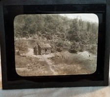 Antique/Vintage 4'x3" glass negative, Mountain cabin and wagon, 1920's